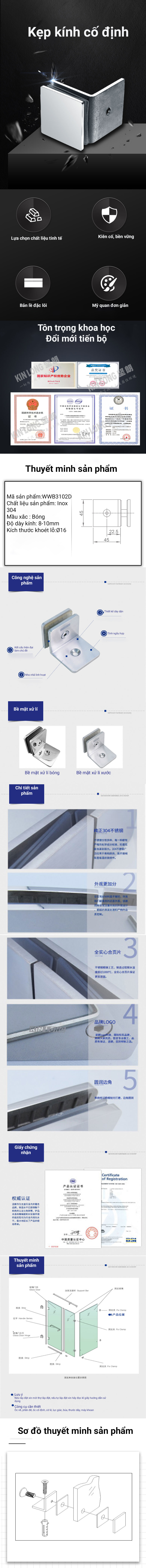 Kẹp cố định kính KIN LONG WWB3102D